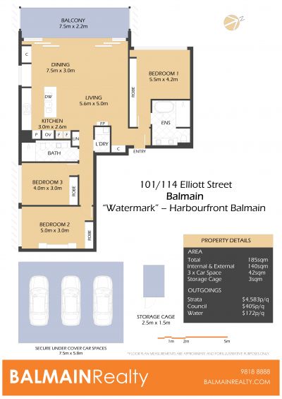 - Secure basement parking for 3 x vehicles (side by side parking), plus an additional lock-up storage cage