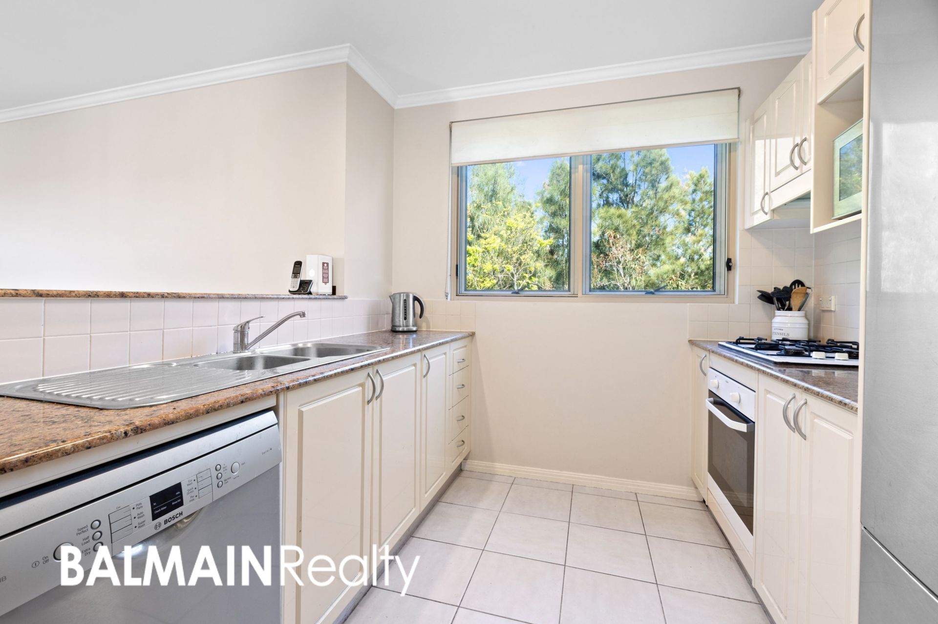 - Functional kitchen features granite benchtops, gas cooktop, oven, rangehood & dishwasher