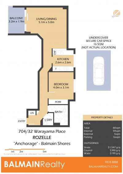 Set within the 'Anchorage' building of the Balmain Shores complex, this one bedroom apartment offers spacious open plan living with timber flooring, that opens onto a covered balcony taking in easterly aspect with water glimpses from an elevated position.